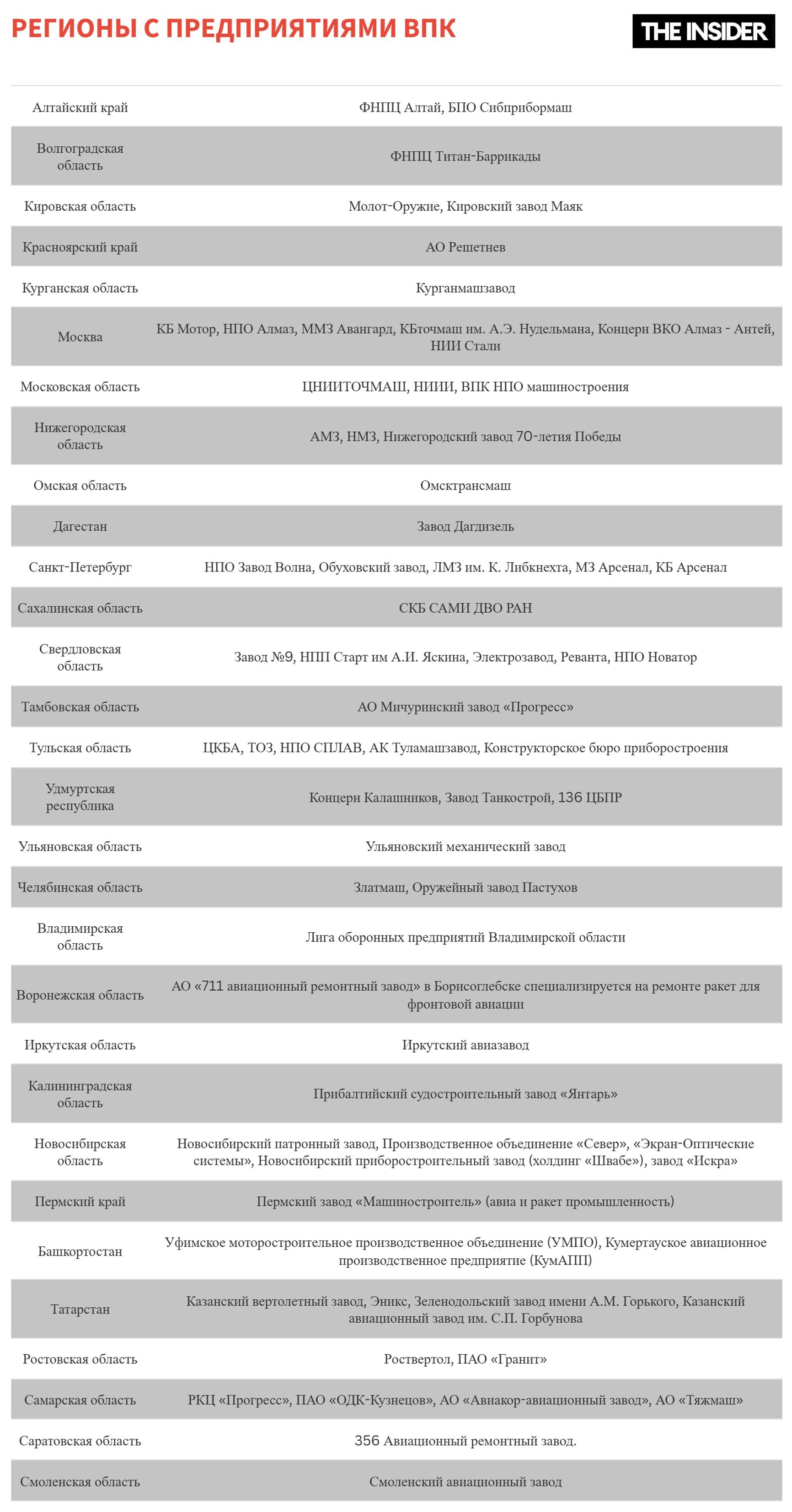 Суммы единовременных выплат взяты из материалов «Важных историй», данные о предприятиях ВПК — с сайта Заводы.рф и из нескольких дополнительных источников.