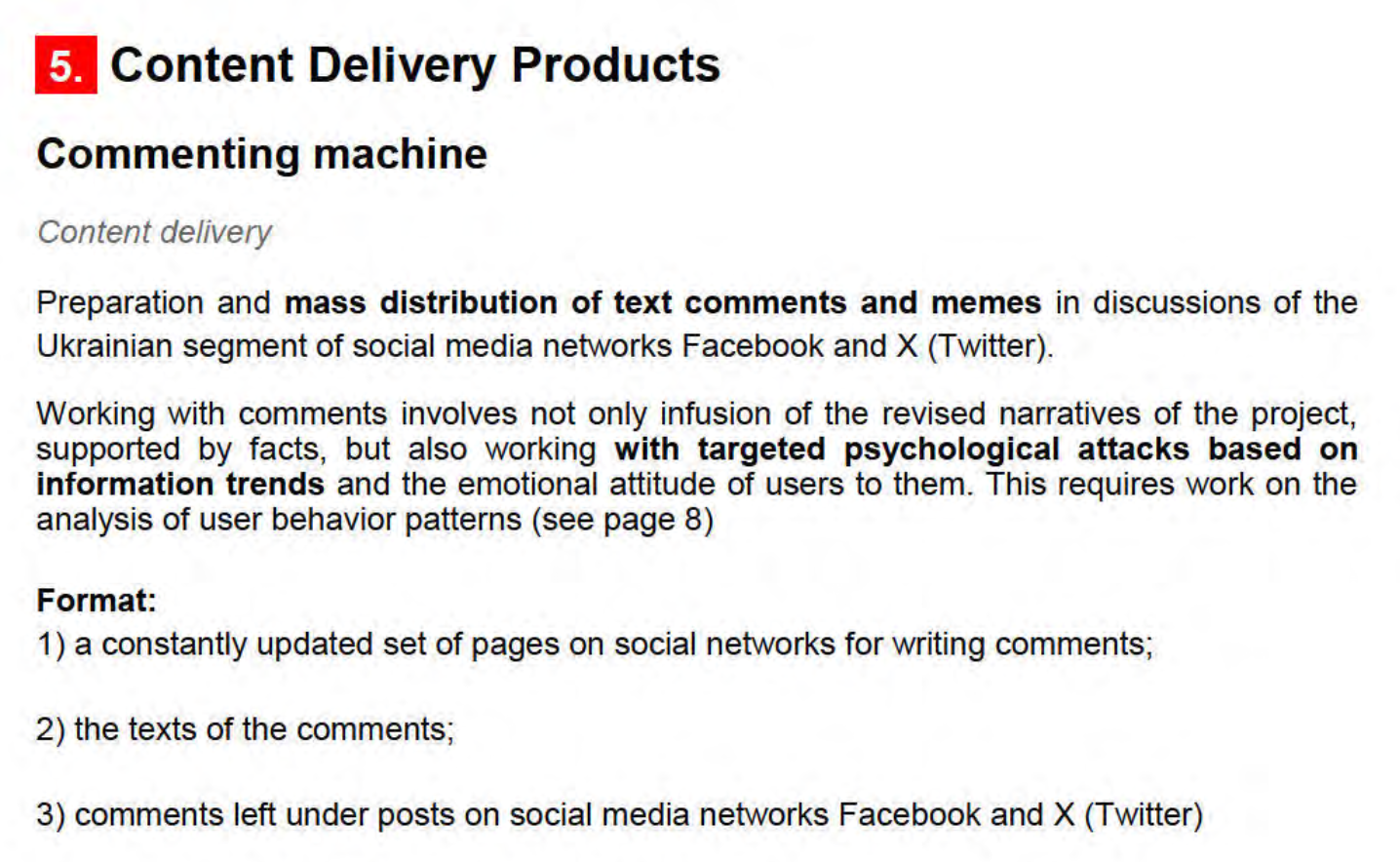 One of the SDA’s typical tactics has been to use a network of bots to spread fake news purporting to come from respected Western publications. The strategy relies on social media users reposting these messages without verifying whether the media outlets actually reported anything of the sort. The tactic has been dubbed “Doppelgänger” in the Western press. Another area of focus for the Kiriyenko-Zakharova team is “memes”: Gambashidze’s team devises ways to package the desired narratives using already well-known and popular memes, then distributes them on social media, hoping they will go viral or be reposted by a popular account with a large audience. Particularly successful cases (for example, if a meme was reposted by Elon Musk) are reported at meetings in the Presidential Administration, which are attended by Kiriyenko.