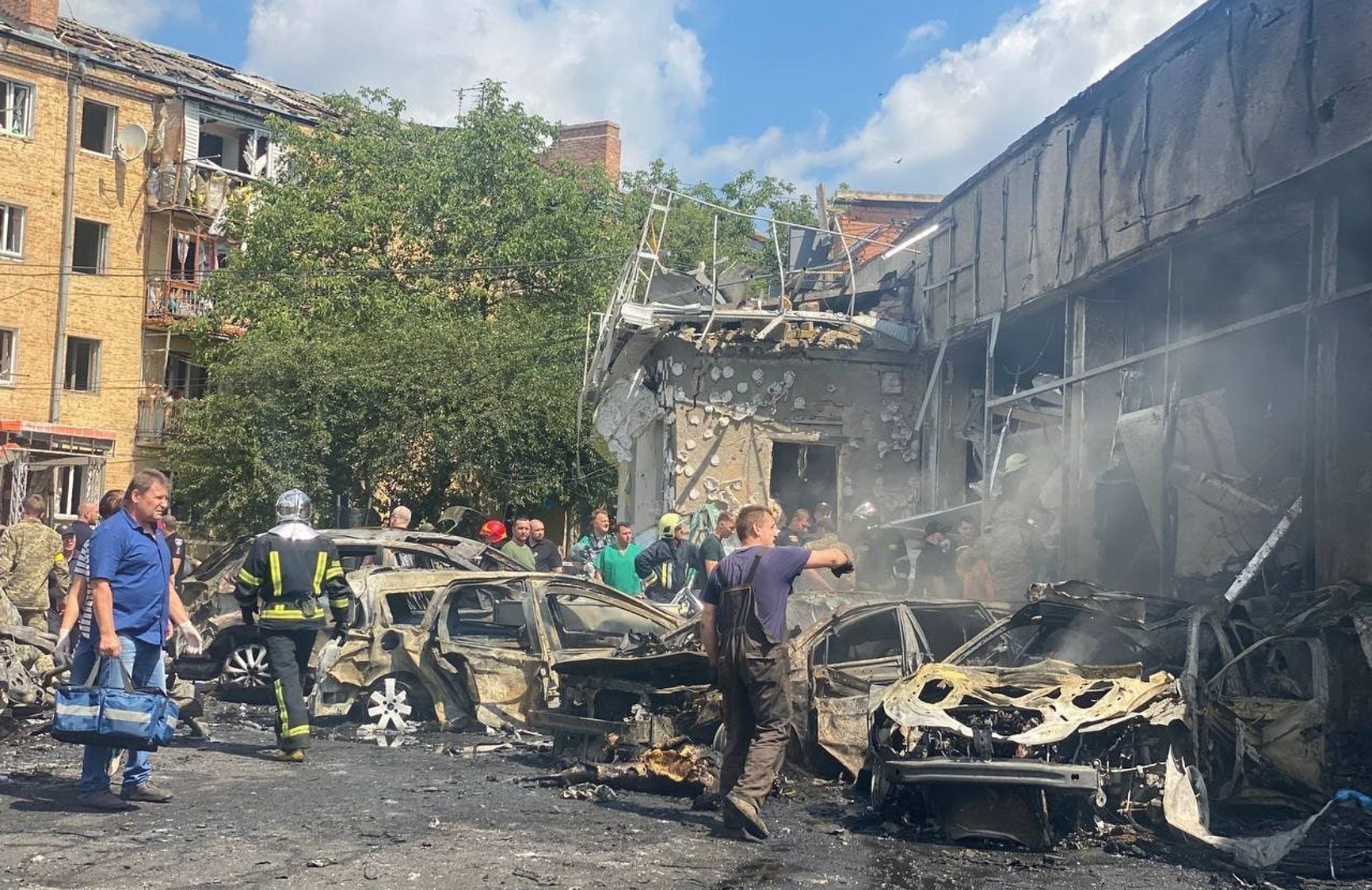 Photos of the aftermath of the missile attack on the city are being published in the media: