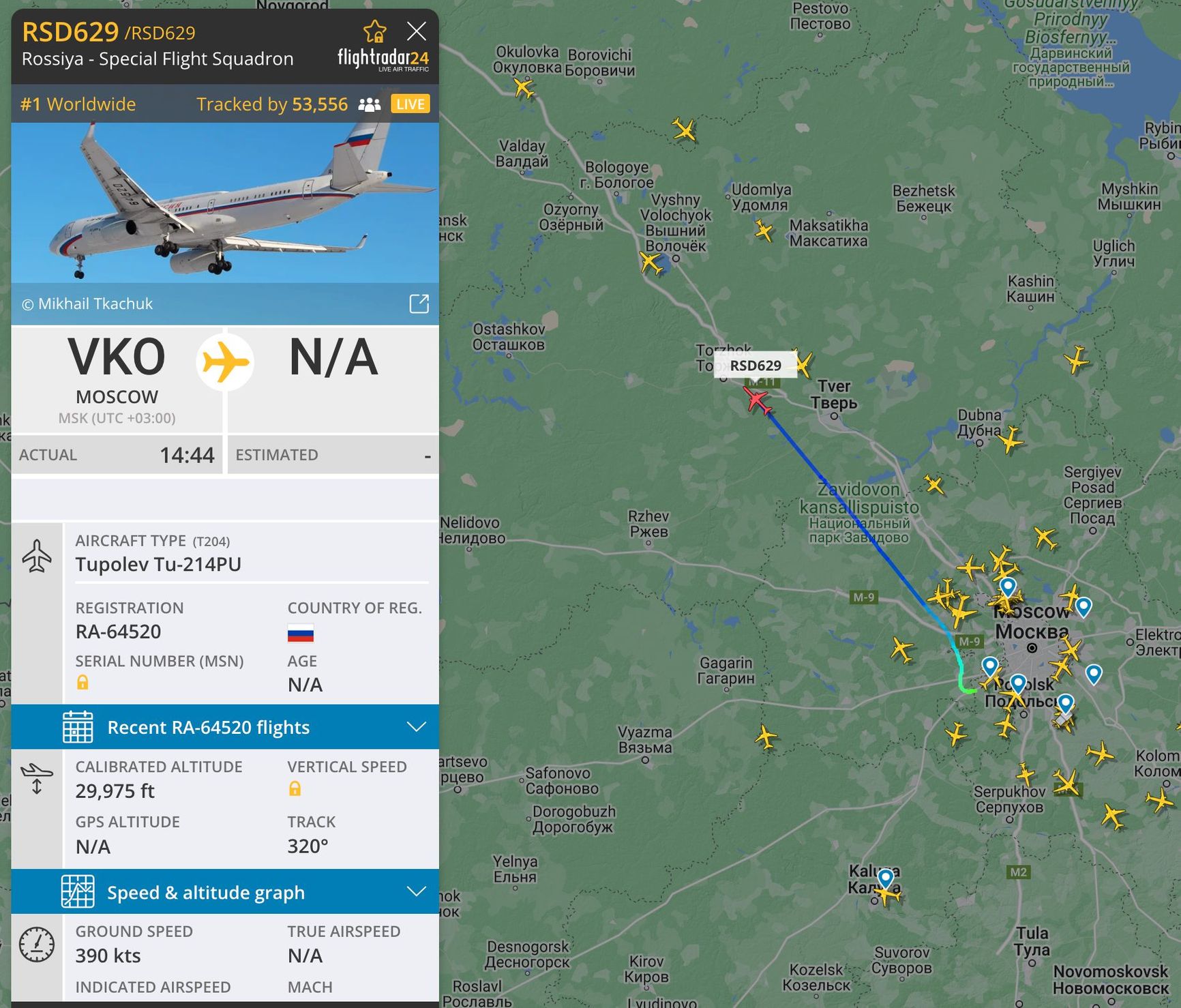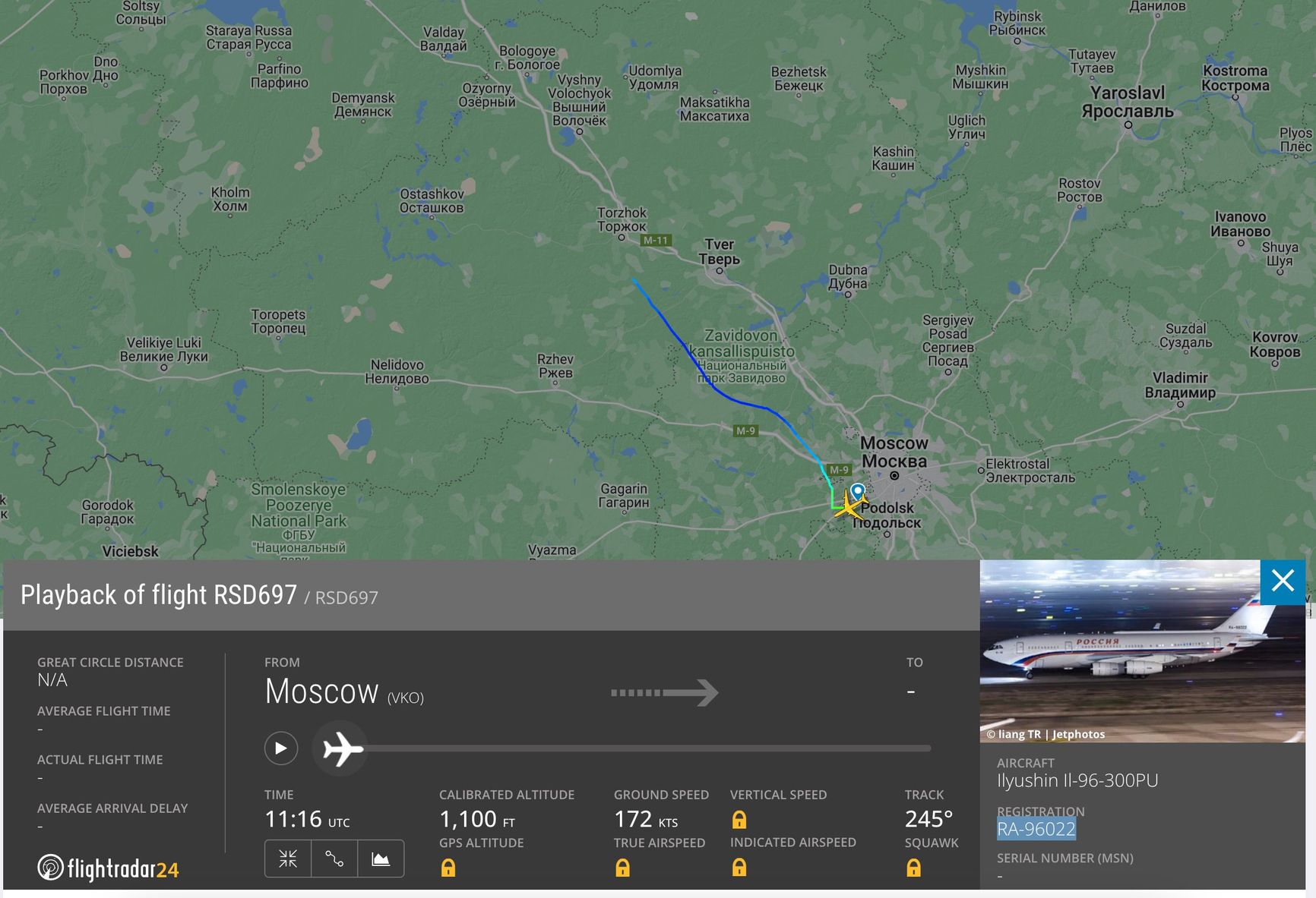 Another Rossiya Special Flight Squadron flight, tail number RA-96022 (flight RSD523), landed in St. Petersburg, according to Flightradar24.