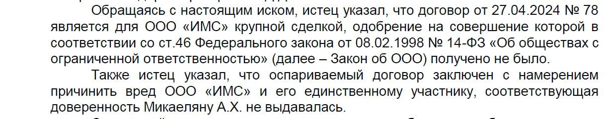 In that case, the Spanish company itself was the plaintiff. Maxam alleged that its former financial director at Maxam Rusia, A.Kh. Mikaelyan, signed two debt assignment contracts shortly before leaving the company. Under those contracts, Maxam’s Murmansk subsidiary, IMS, transferred its claim over MaxamCorp International S.L. to another subsidiary — VSI. But VSI was no longer under Maxam’s control. In early 2024, it had been taken over by Promsintez, the former partner.