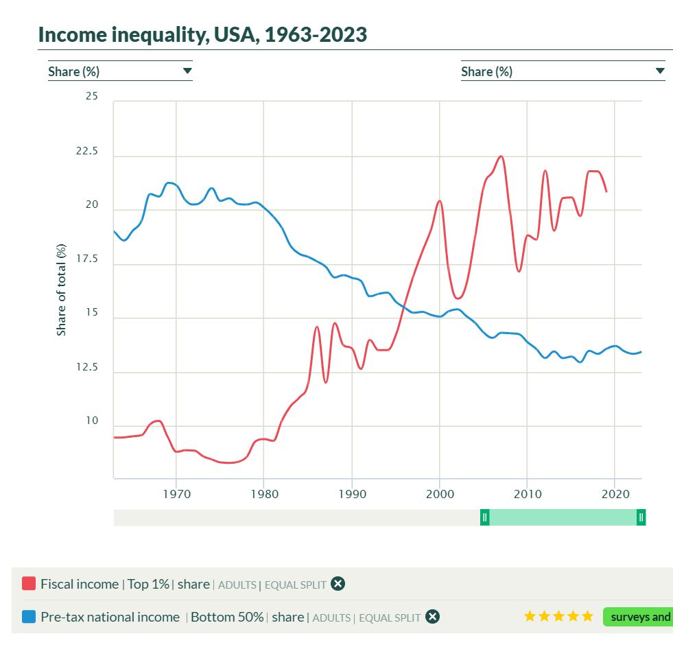 Meanwhile, median American incomes (after taxes and adjusted for inflation) have grown very little since the 1970s — only by about 20% — while in countries like Britain and Norway, they have more than doubled in that time. For the past few decades, the average American has seen that, despite a record-breaking stock market and the emergence of more and more billionaires, they remained, at best, where they had been — or even got poorer, as housing affordability has fallen dramatically over the past five years.