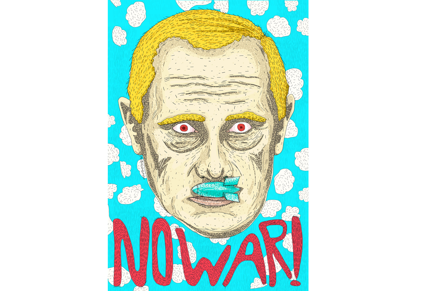 Many of the artists with a strong political stance, who weren't hesitant to speak up before the war either, already have a following: Tima Radya, Kirill Kto, Slava PTRK, Philippenzo, Zoom, Blue Pencil, the Yav Art Group, Artem Loskutov, Make/Partizaning, a few performance artists from Pussy Riot (most of whom have been squeezed out of the country), and a handful of anonymous authors.