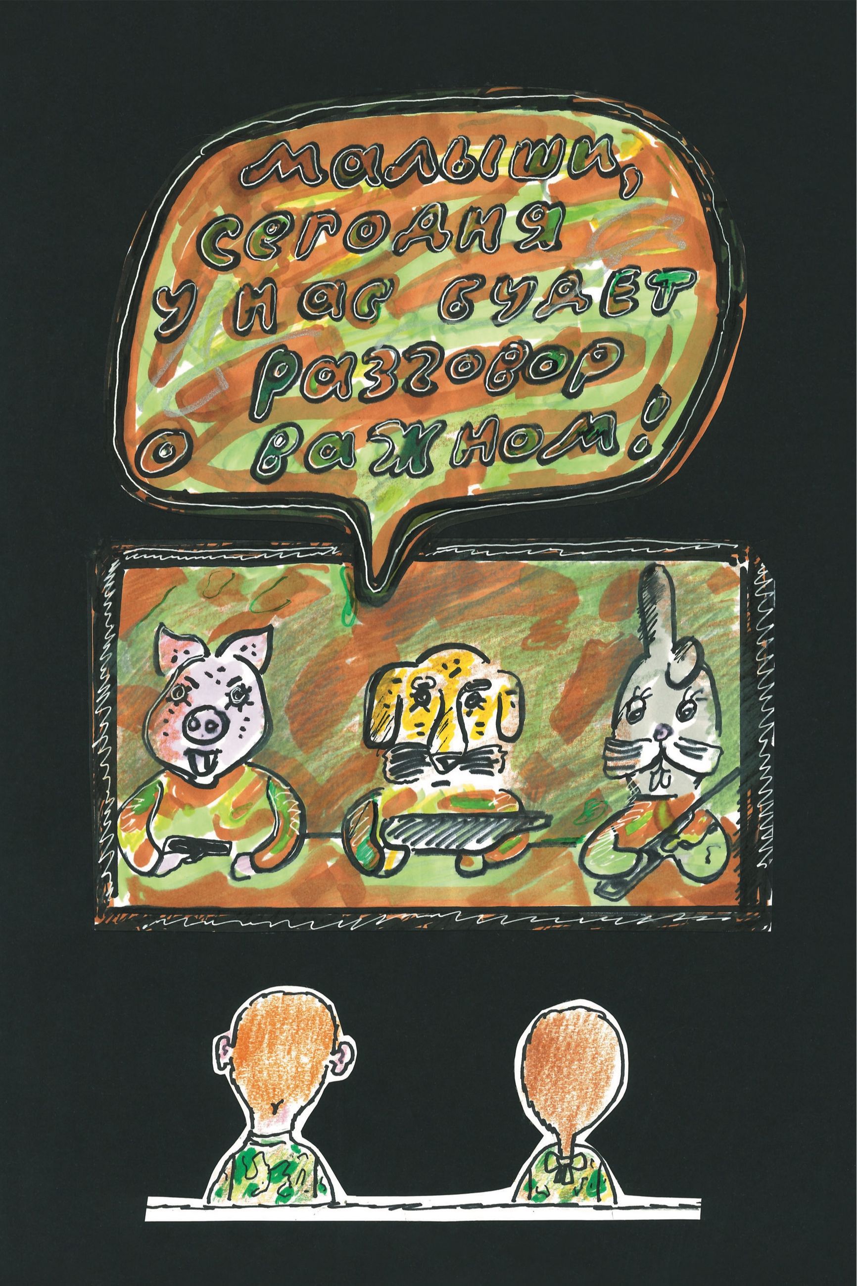 Детство в Советском Союзе было красного цвета, цвета пионерского галстука, цвета октябрятской звездочки с лицом кудрявого Ильича. Детство в сегодняшней России — детство цвета камуфляжа, детство с дроном в руках или с картинкой, на которой изображен дрон. Детство — это беседа с серьезными дядьками, у которых небольшой словарный запас, но как бы мужественное выражение лица. Но и то и другое детство — и детство СССР, и детство РФ — это детство императивное: детство, в котором интонации любви заменены интонациями приказа. И, может быть, это самое главное зло сегодняшнего периода, который мы проживаем, — изуродованное детство. Не безоблачное,