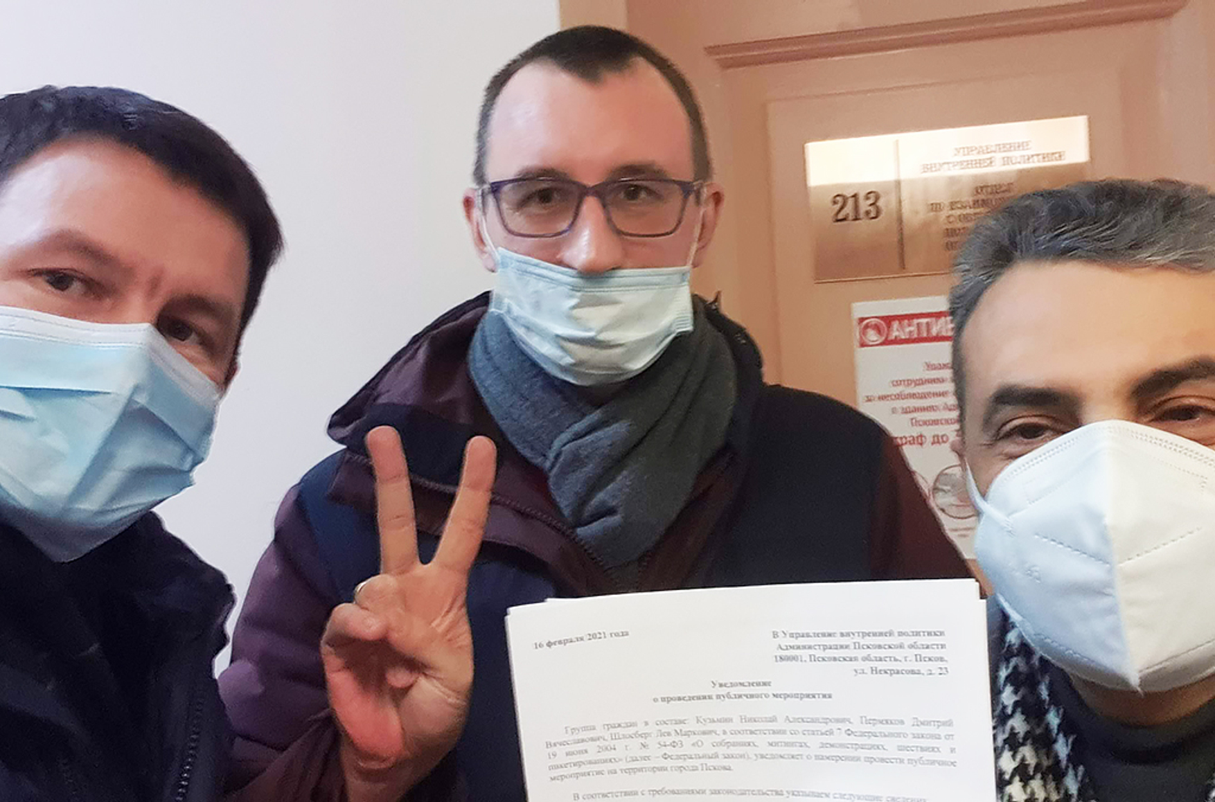 Зампред псковского «Яблока» Дмитрий Пермяков предположил, что речь может идти о митинге 23 января, когда Лев Шлосберг был задержан в Пскове и оштрафован якобы за участие в митинге.
