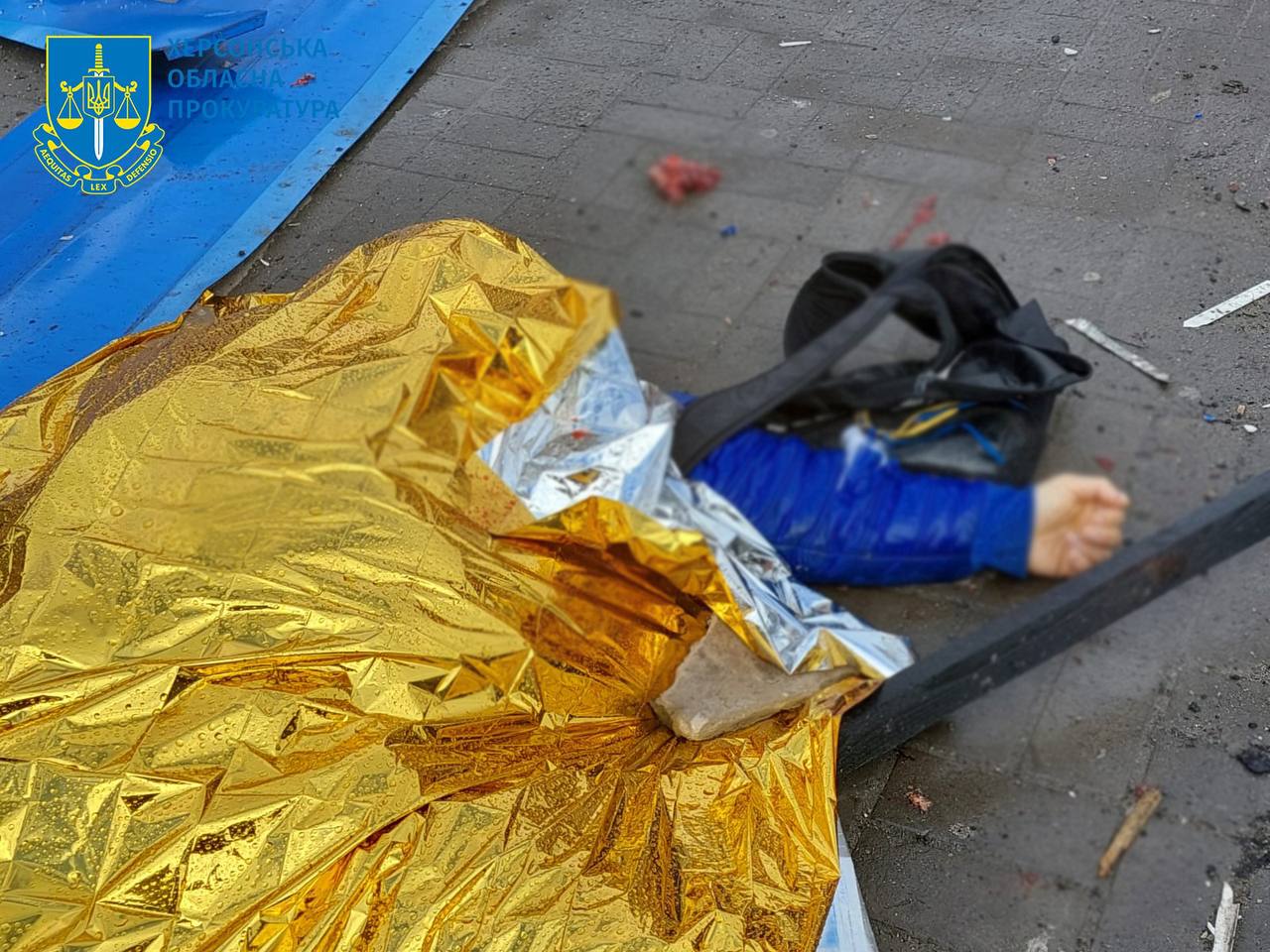 По данным Офиса Генпрокурора Украины, Херсонская областная прокуратура начала уголовное расследование по факту нарушения законов и обычаев войны, соединенного с умышленным убийством (ч. 2 ст. 438 УК Украины). Офис Генпрокурора сообщает о пяти погибших: два человека погибли на месте, двое других — по дороге в больницу, еще одна женщина погибла от обстрела в собственном доме. 15 человек ранены.