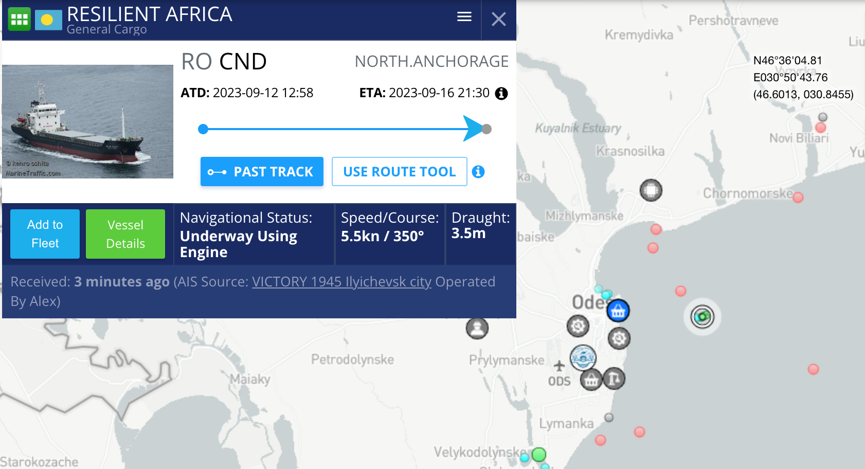 Первые гражданские суда воспользовались временным коридором, установленным ВМС Украины, по направлению к украинским портам — это два балкера Resilient Africa и Aroyat. Судя по данным отслеживания судов, в настоящее время находятся рядом с портом Черноморск, причем Resilient Africa прошел дальше, к Одессе.