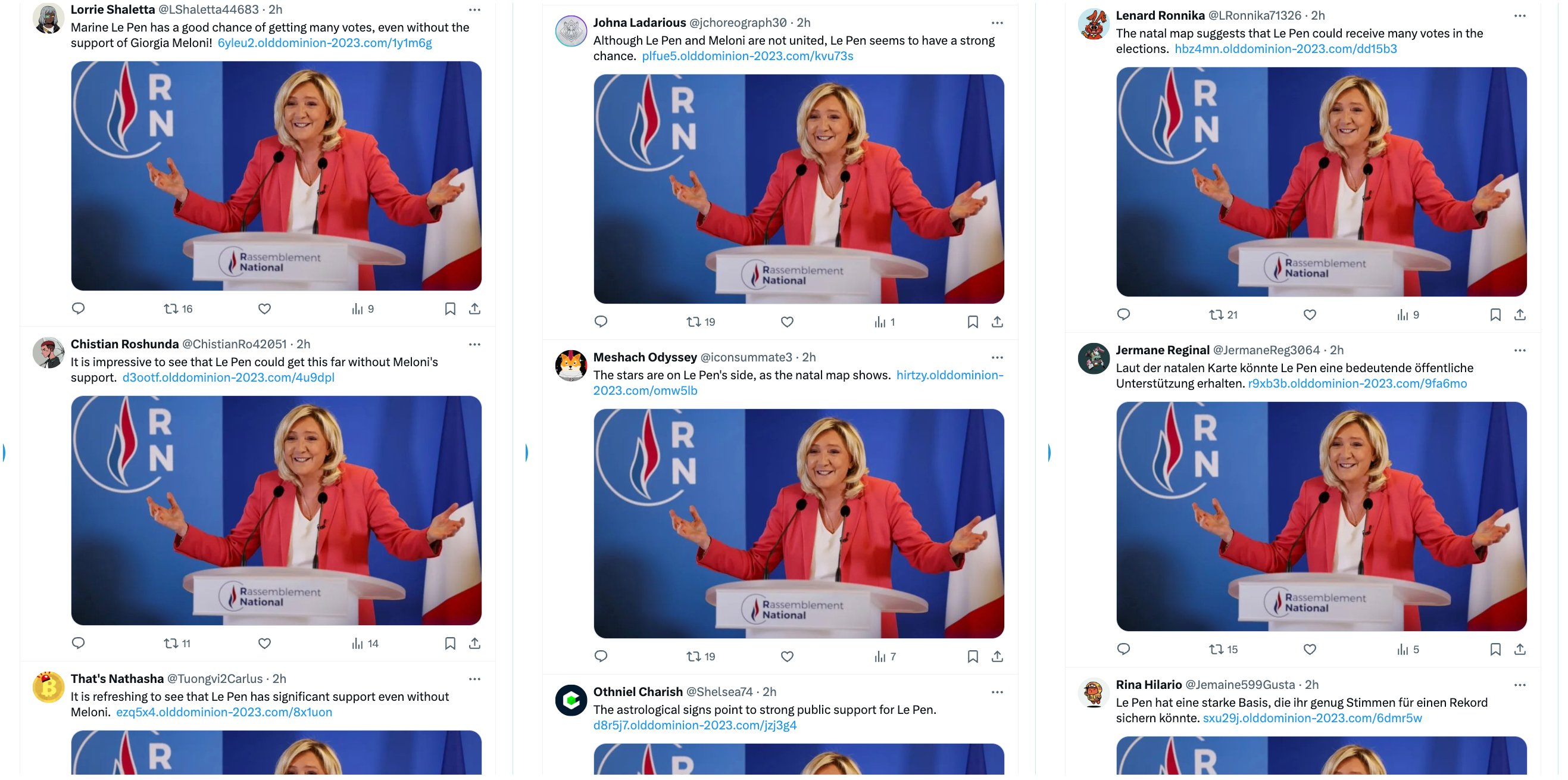 Было опубликовано 2 млн твитов, и за 24 часа их посмотрели 1,6 млн пользователей сети Twitter. В 2024 году МИД Германии сообщал о подобной атаке, но тогда речь шла о 200 тысячах твитов — это в десять раз меньше, чем возможности Doppelgänger сейчас. Причем публикации делаются на как минимум 13 языках одновременно, включая турецкий, арабский и даже корейский, отмечают исследователи.