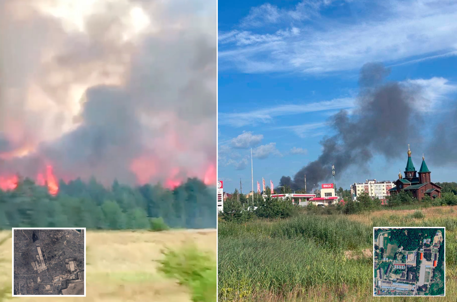 Российские и украинские Telegram-каналы сообщили (1, 2, 3) о пожарах в районе двух военных объектов. В Ростовской области зафиксирован пожар со стороны хуторов Филиппенков и Красновка в Каменском районе. Рядом с ними находится полигон «Бородиновский» 11-й отдельной гвардейской инженерной бригады (в/ч 45767), сама она базируется рядом в городе Каменск-Шахтинский. На карте NASA FIRMS также отображается возгорание — в месте расположения полигона.