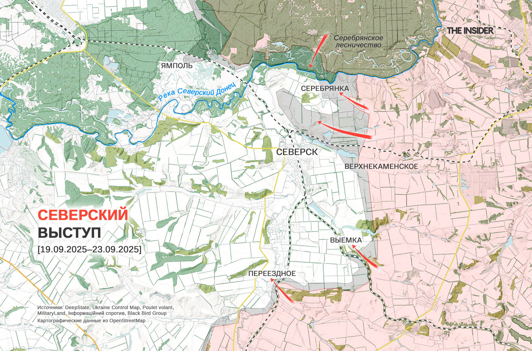 На Северском выступе российские войска приближаются к Северску с юга со стороны Переездного.