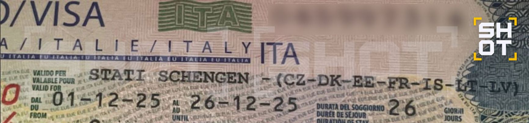 Первоначальный пост про «урезанные» визы опубликовал накануне, 24 сентября, Telegram-канал SHOT. В посте утверждается, что речь идет о краткосрочной шенгенской визе, выданной Италией. Пост сопровождается фотографией ее части, на которой виден срок действия визы: с 1 по 26 декабря этого года.