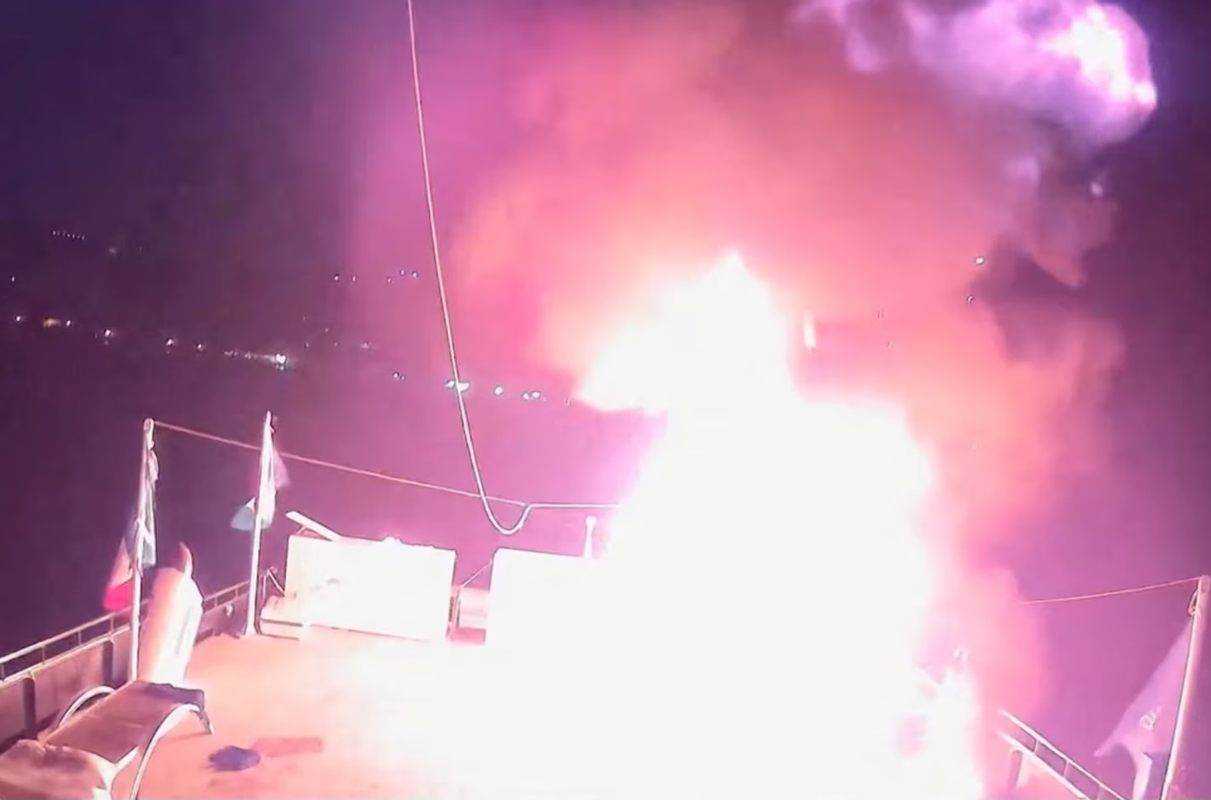 Итальянский депутат Европарламента Бенедетта Скудери, находящаяся на одном из судов, рассказала, что дроны сбрасывали шумовые гранаты. Одна из них попала в мачту парусника, на котором она перемещается, повредив основной парус. Грета Тунберг подтвердила, что несколько судов получили повреждения в результате взрывов, но заявила, что флотилия продолжит свое плавание к цели.