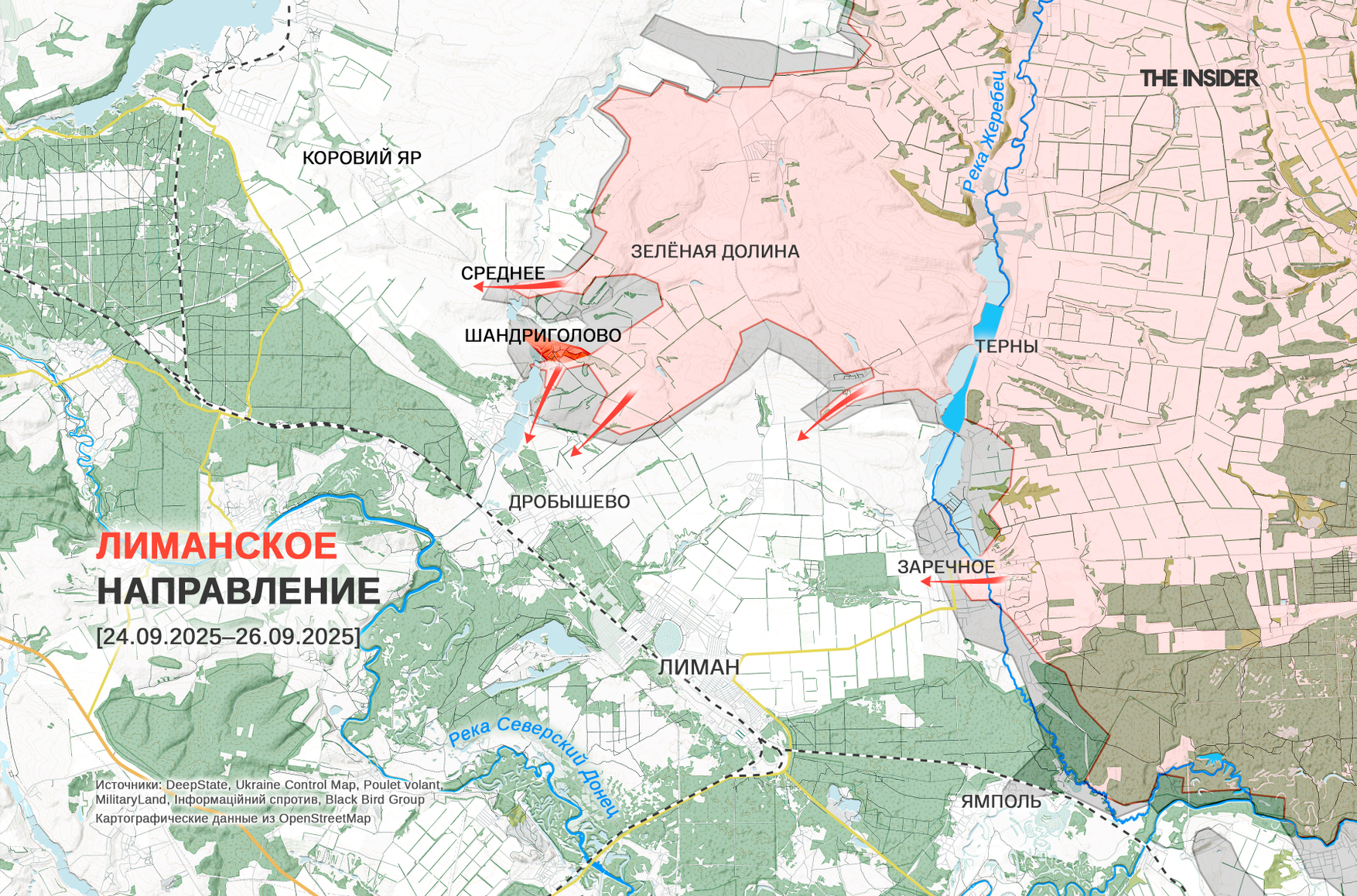 На лиманском направлении ВС РФ продвигаются в районе Шандриголова к северо-западу от Лимана (до 2016 года — Красный Лиман).