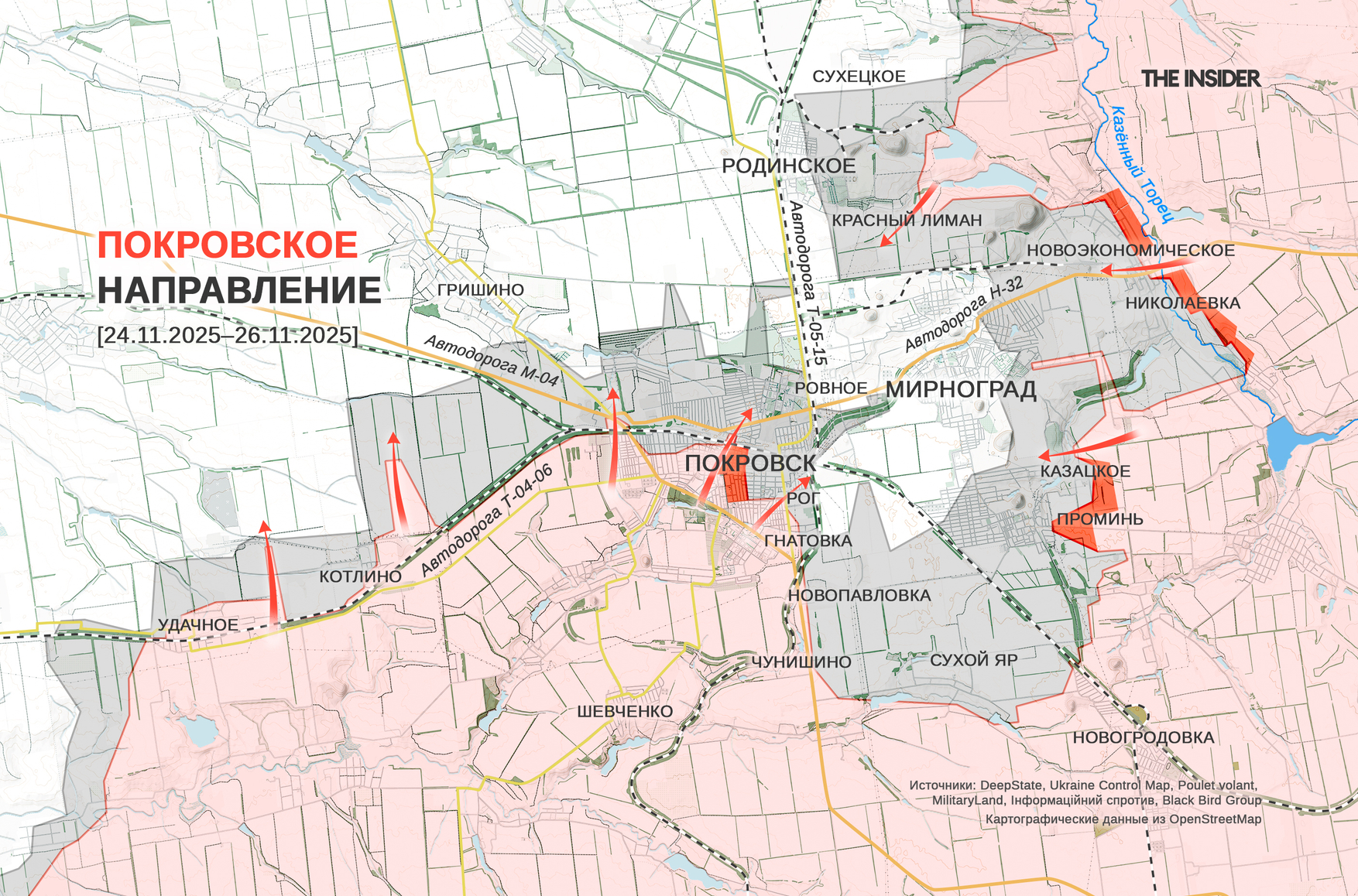 О главных событиях войны 25 ноября — в предыдущей сводке: Часть Северска в «серой зоне», в Таганроге уничтожены два экспериментальных российских самолета: А-60 и А-100. Что происходит на фронте