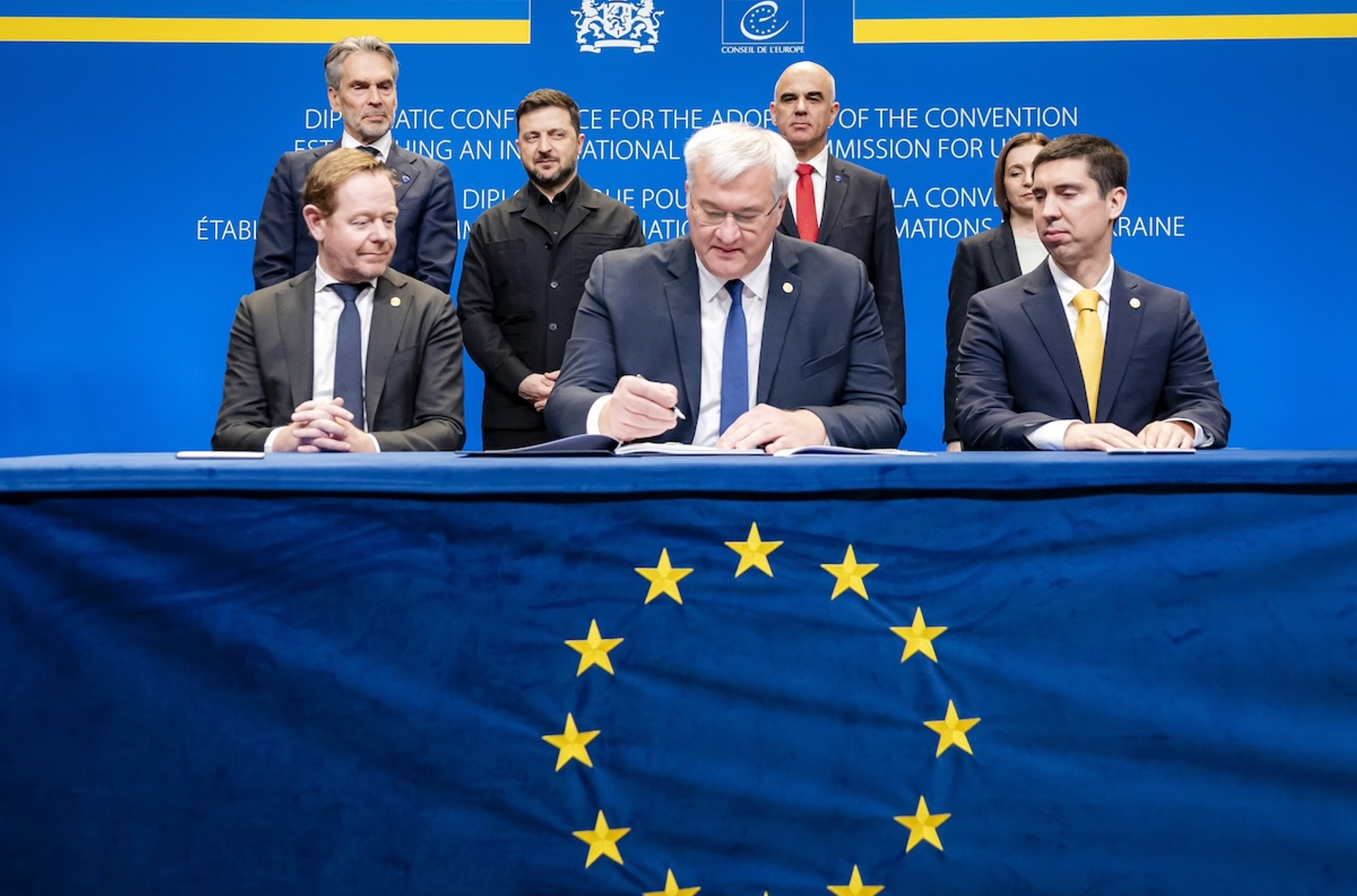 Подписание договора о создании комиссии по компенсациям Украине. Фото: Shutterstock