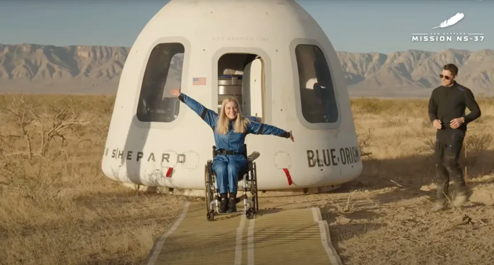 Человек в инвалидной коляске впервые побывал в космосе. Компания Безоса Blue Origin отправила в короткий полет парализованную девушку