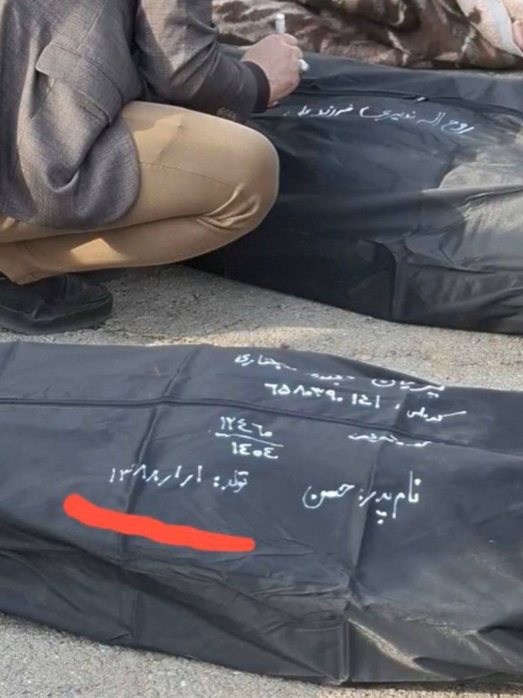 В канале, который называетcя «Объединенный профсоюз водителей грузовиков Ирана», но публикует политические новости и заявления, выложили фотографию мешка для трупа, на котором написано имя Хасан и год рождения убитого — 1388 (2009 по григорианскому календарю), то есть погибшему было 16 лет.