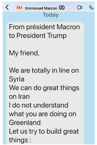 Хронологически публикация скриншота сообщения от Макрона американским президентом последовала за сообщениями СМИ о том, что французский президент откажется присоединиться к возглавляемому Трампом Совету мира. Трамп в ответ на это пригрозил Франции 200-процентными торговыми пошлинами на вина и шампанское.