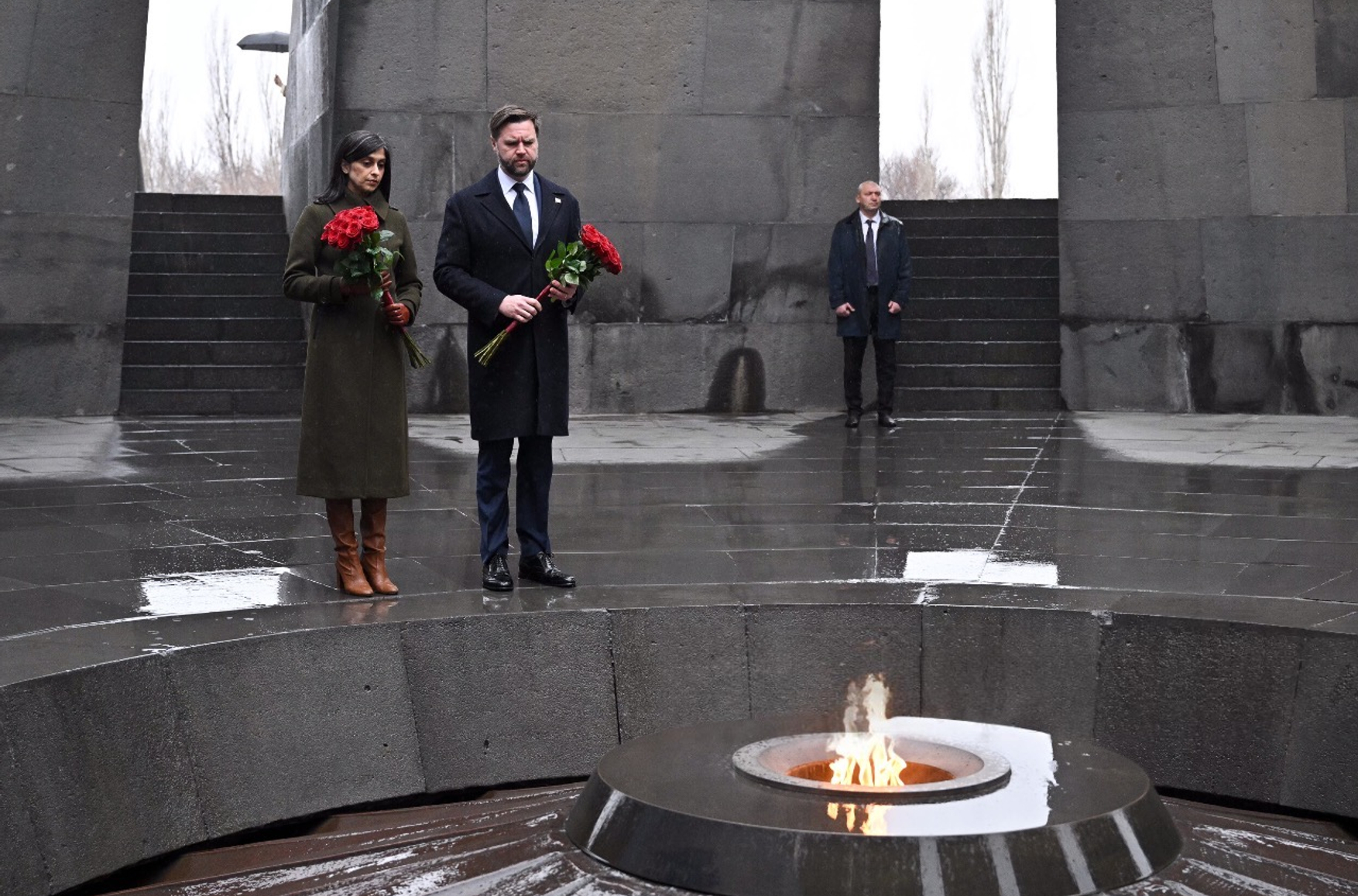 Вице-президент США Джей Ди Вэнс во время официального визита в Ереван посетил мемориальный комплекс Цицернакаберд, посвященный жертвам геноцида армян в Османской империи. Вместе с женой Ушей он возложил цветы к мемориалу, а также оставил запись в почетной гостевой книге Музея Геноцида.
