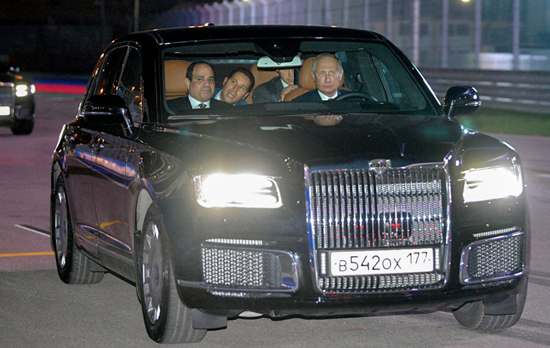 Владимир Путин (за рулем) и президент Египта Абдель Фаттах ас-Сиси в автомобиле Aurus, 2018. Фото: ТАСС