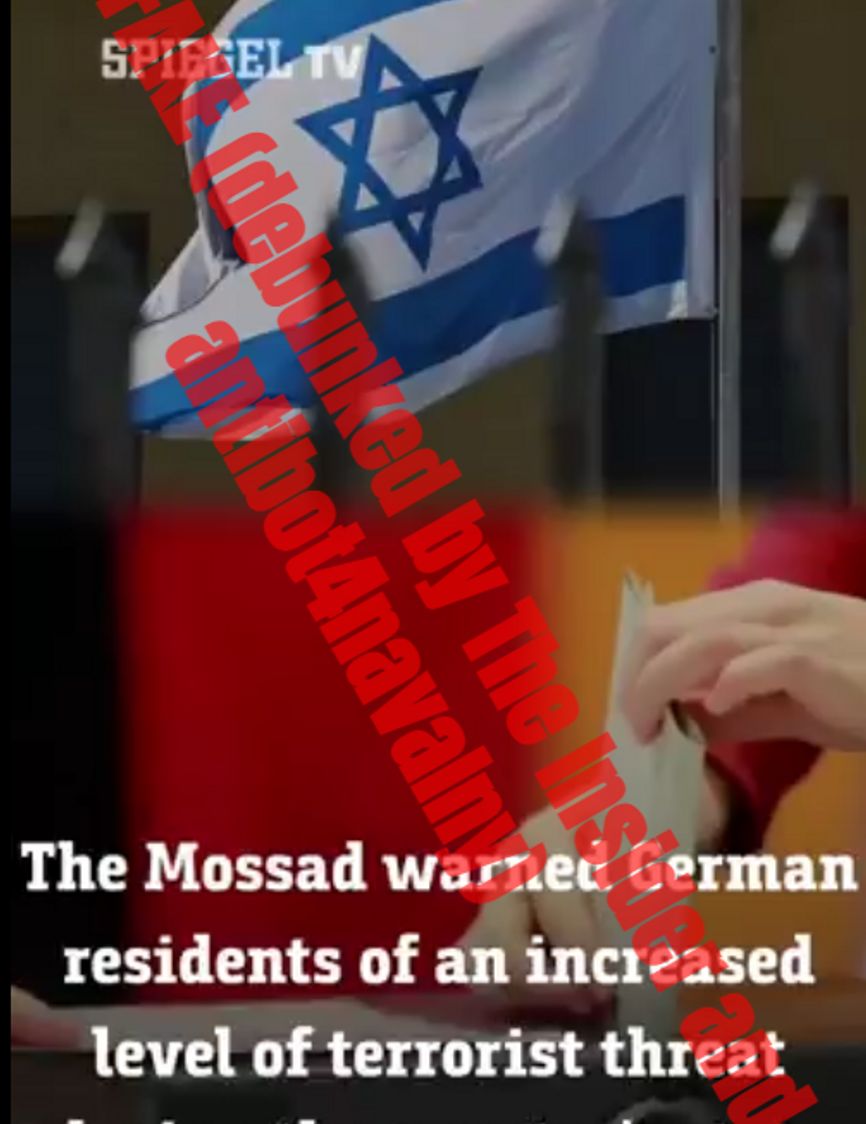 В одном из них, замаскированном под контент известного немецкого издания Der Spiegel говорится, что израильская спецслужба «Моссад» и Контртеррористическое управление ООН якобы предупредили немецкие власти о возросшей террористической угрозе после начала вооруженного конфликта на Ближнем Востоке. В связи с этим жителям Германии настоятельно рекомендуют не ходить в публичные места, в том числе и на избирательные участки. Примечательно, что подобную риторику «Матрешка» уже использовала в прошлом году перед президентскими выборами в Польше. Также жителей Европы запугивали возросшей террористической угрозой после масс-шутинга на австралийском пляже во время еврейского праздника Ханука.