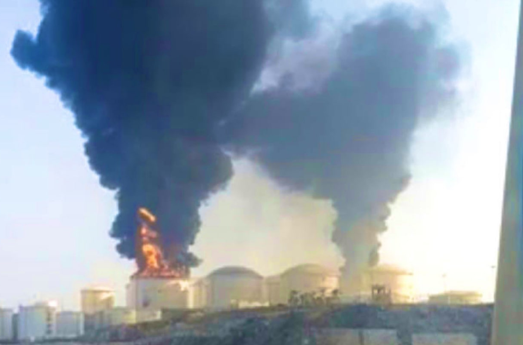 По информации Oman News Agency, порт атаковали несколько беспилотников. Некоторые из них были сбиты, другие ударили по топливным резервуарам. В соцсетях публикуют видео и фото, на которых видно, как над портом поднимаются два густых столба дыма.
