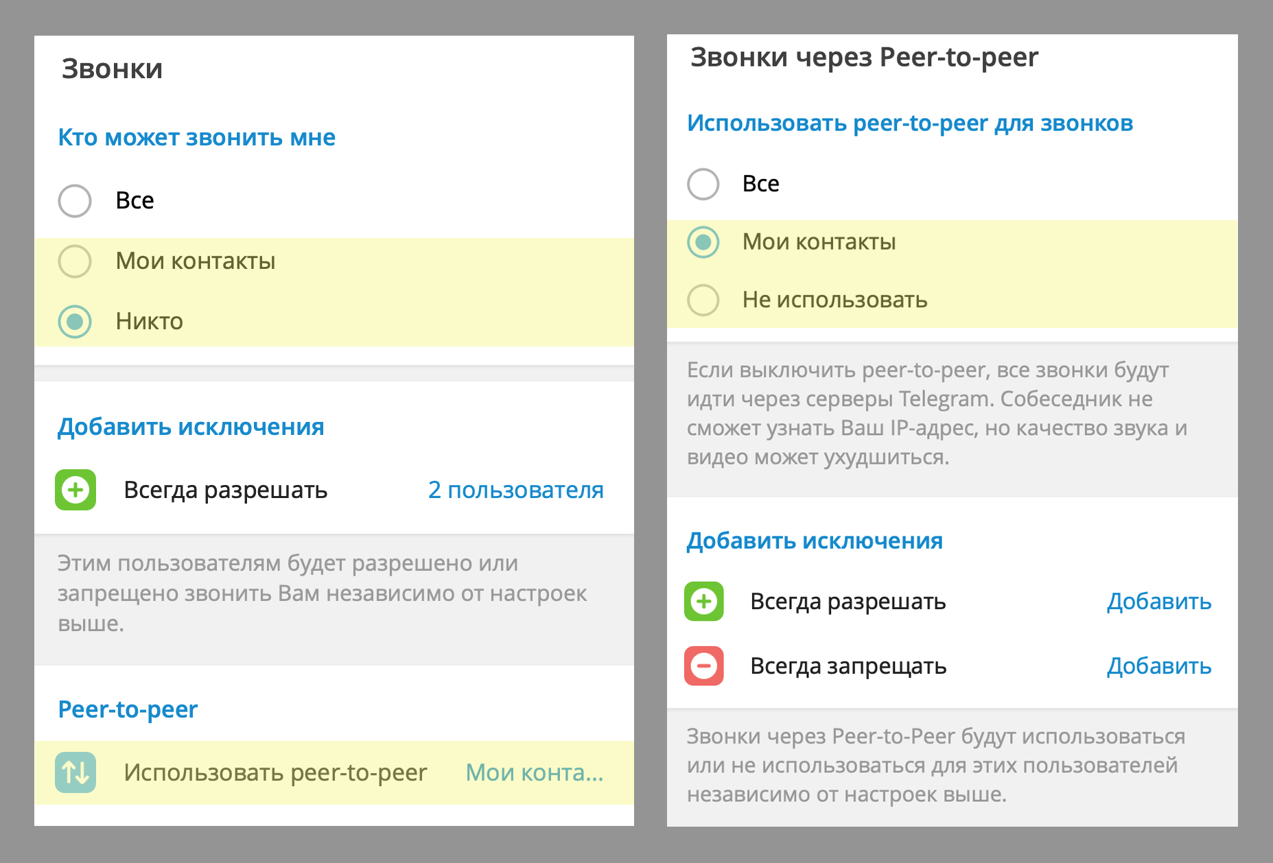 - Поставьте ограничение на звонки, чтобы вам не могли звонить те, кого у вас нет в контактах. То же самое касается добавления в группы и чаты. Можно даже поставить в настройках, что звонить вам и добавлять вас в чаты не может вообще никто.