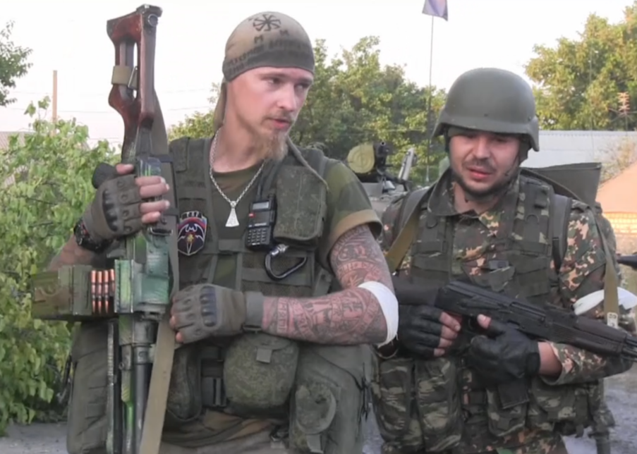 Участники польской неонацистской организации Zadruga (Задружий Круг) - лидер Артур Чмок (слева) и бывший полицейский - Арвид Плочевский (снизу). Например на этом видео боец ДШРГ Русич и Ян Петровский на заднем плане, в захваченном здании Украины, передают привет польским братьям, особенно из Кракова