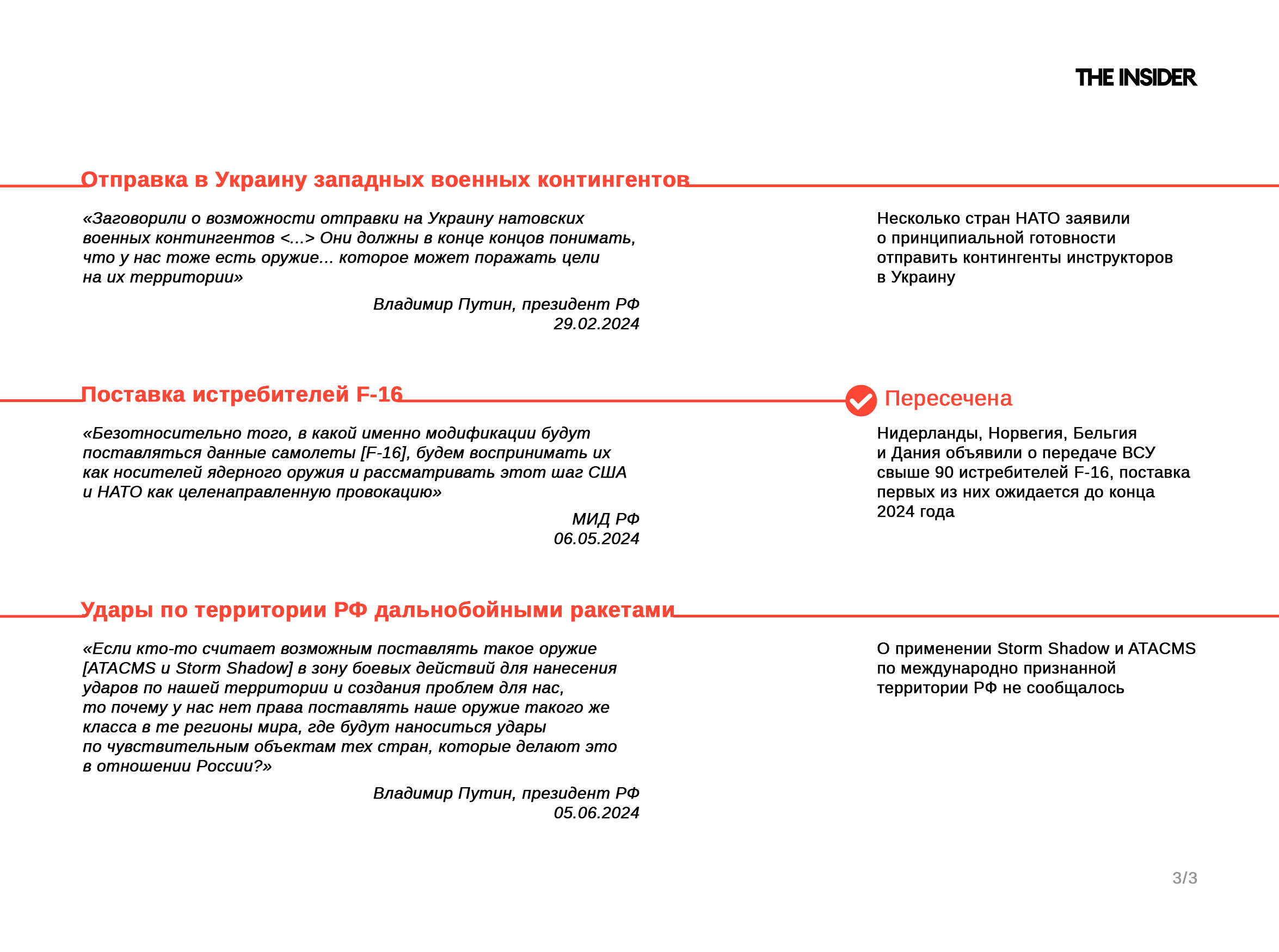 Путин обозначил свои красные линии в самом начале войны, заявив 24 февраля 2022 года: