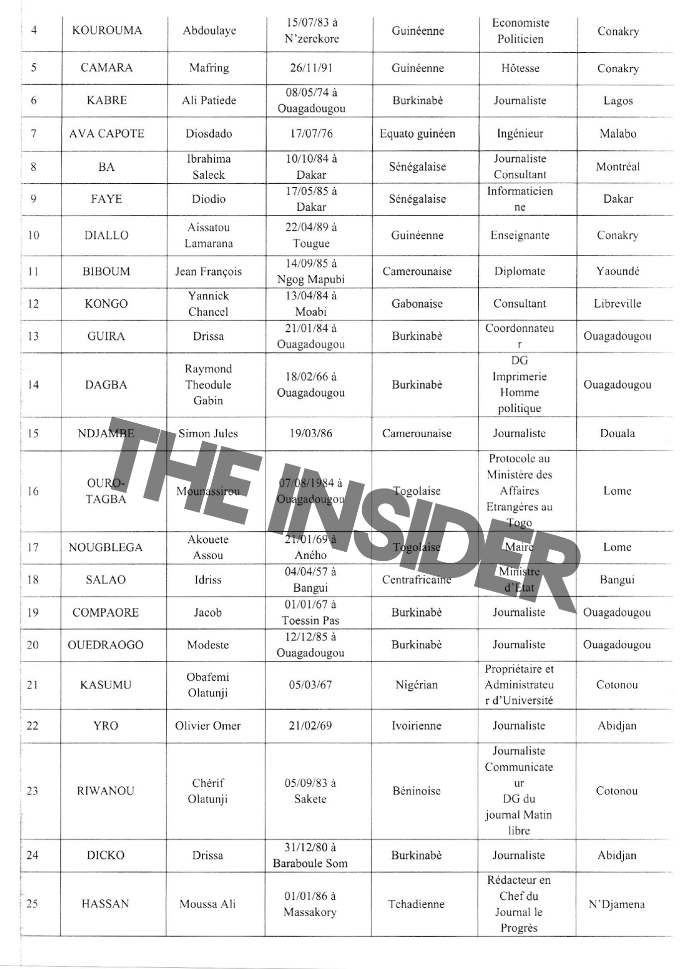 Впрочем, большинство потенциальных наблюдателей из Африки, чьи имена оказались в распоряжении The Insider, совсем не появлялись в СМИ, а некоторые вовсе далеки от политики или общественной деятельности. Среди них, например, казначей Федерации футбола Буркина-Фасо или IT-специалист из Сенегала.